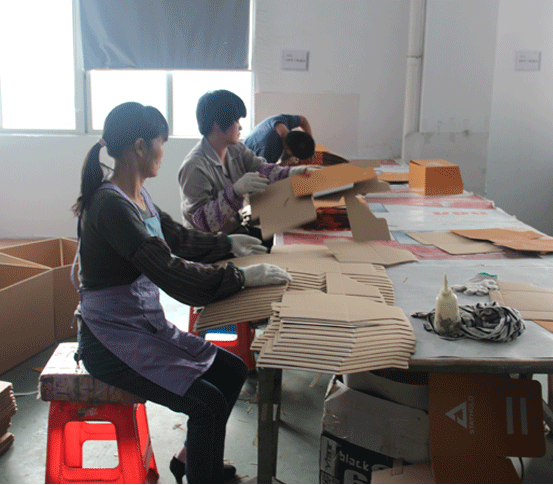 6.彩盒粘制/打钉:把彩盒按照样板进行固定连接部位用胶水粘起来,或者根据样板进行打钉。